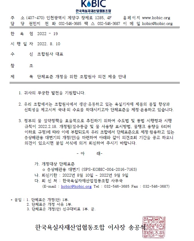 ÇÑ¿åÇù2022-19-1 ´ÜüǥÁØ(Á¦Á¤°³Á¤È®ÀÎ ¹× ÆóÁö)»çÀ¯¼.hwp
